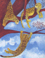 mai aut, au mai peniblo èro la cabussado sus soun quiéu. "As-ti deja vist un leoupard que saup pas escala ?" diguèron li leoupard trufaire, en sautant d'un malin plesi, d'uno branco à l'autro. Alor, la maliço s'apouderè de Sahib - "Siéu pas un leoupard !" gingoulè Sahib. "Siéu un tigre !" Li leoupard s'estrassèron de rire : "Un tigre ! es un tigre ! un tigre picouta ! As que de dire que siés un lioun !" |